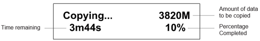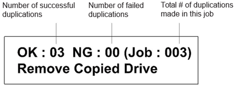 6. During the duplication process you can view the following information displayed on the LCD screen: