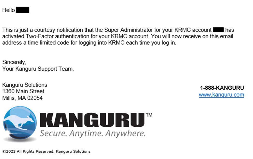 2FA can be enabled on all KRMC Hosted accounts or individual ones based on your preferences.