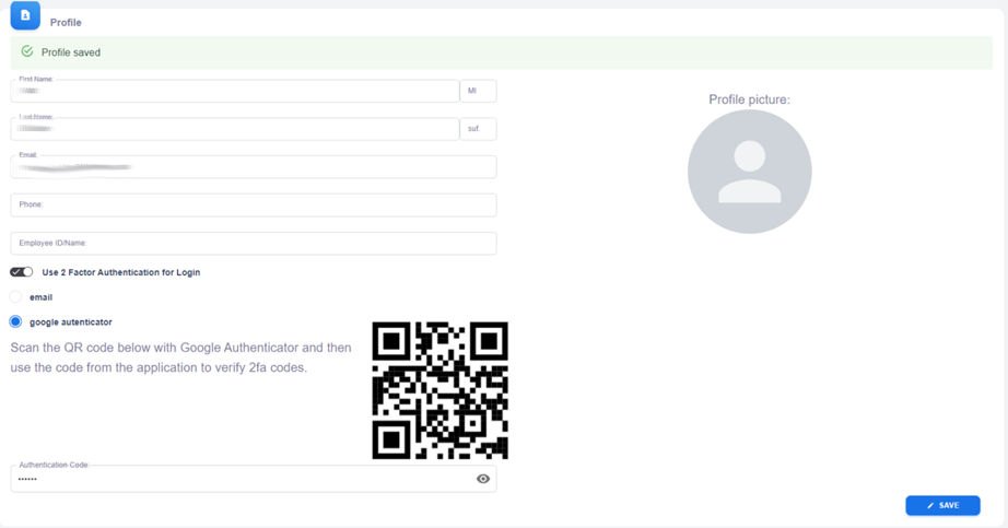 - You will know that the 2FA setup has been completed as you will receive a message on KRMC Hosted stating “Profile Saved”.