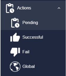 The Actions Page allows the currently logged in Administrator to review the history of actions sent to devices they own. From here you can view a list of all pending actions, successful actions, and failed actions, and also create a global action that will be sent to every device that you manage.