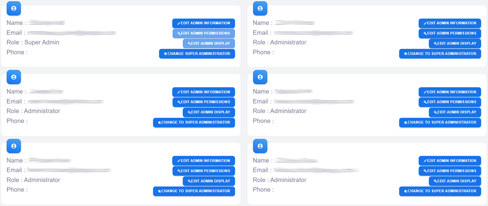 KRMC Hosted - Admin Management Page - Admins